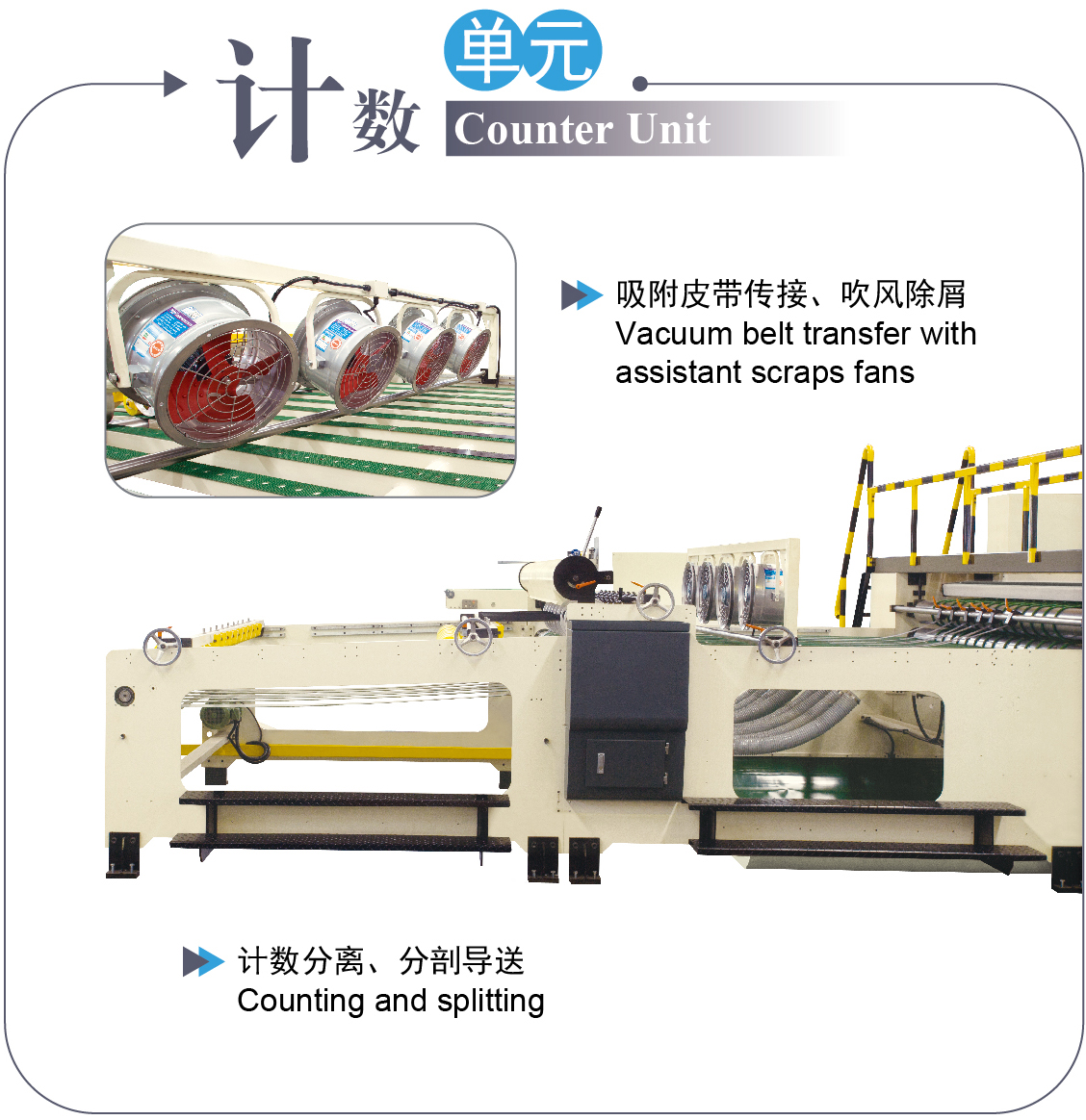 • 分剖傳輸、計數(shù)分離、疊紙排出,省人高效。